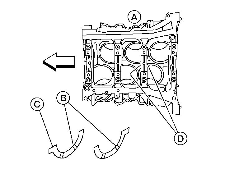 If the crankshaft or the cylinder block is replaced with a new one, select thickness of the main bearings as follows:The grade number of each cylinder block main journal is punched on the respective cylinder block. These numbers are punched in either Arabic or Roman numerals. If measured diameter is out of the grade punched, decide suitable grade from available main bearings.