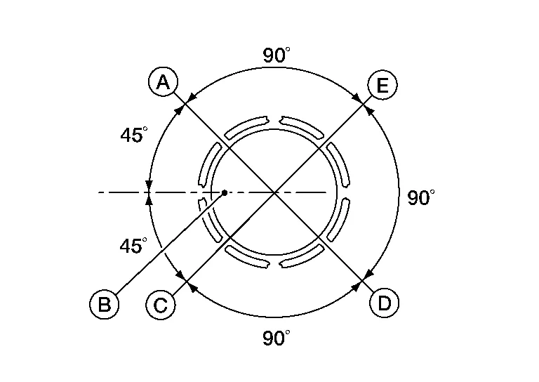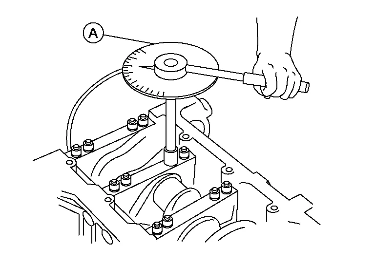 Measure the tightening angle in two stages using Tool (A). Do not measure with eyes only, be sure to use Tool (A).