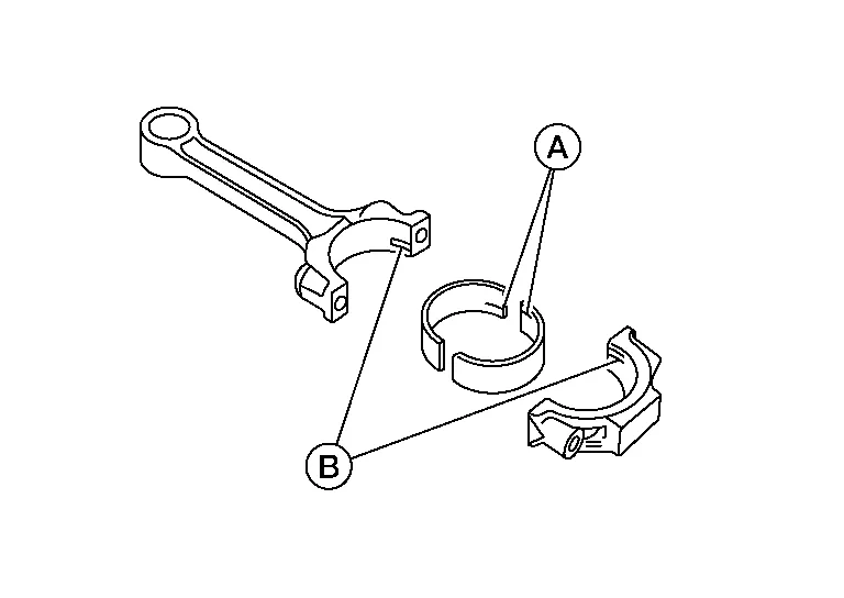 Install bearing with a projection on one end on cylinder block and bearing with a projection at center on cap. Align each projection with mating notch.