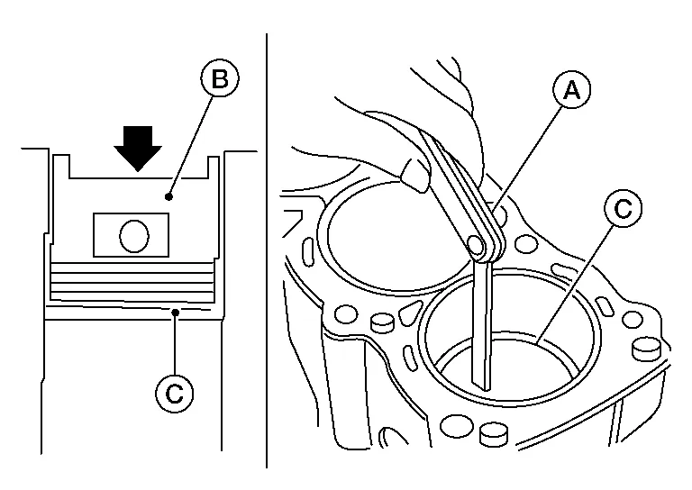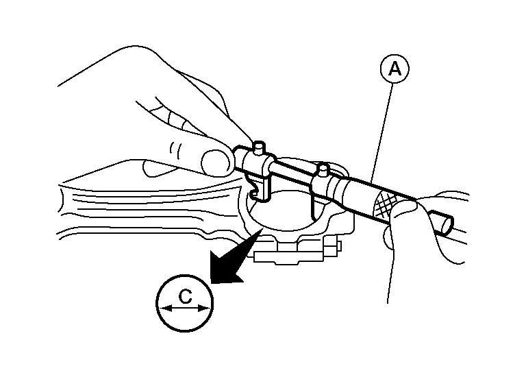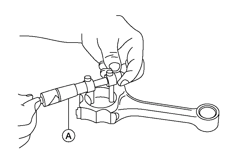 Measure the inner diameter (C) of each connecting rod (big end) using suitable tool (A) as shown.