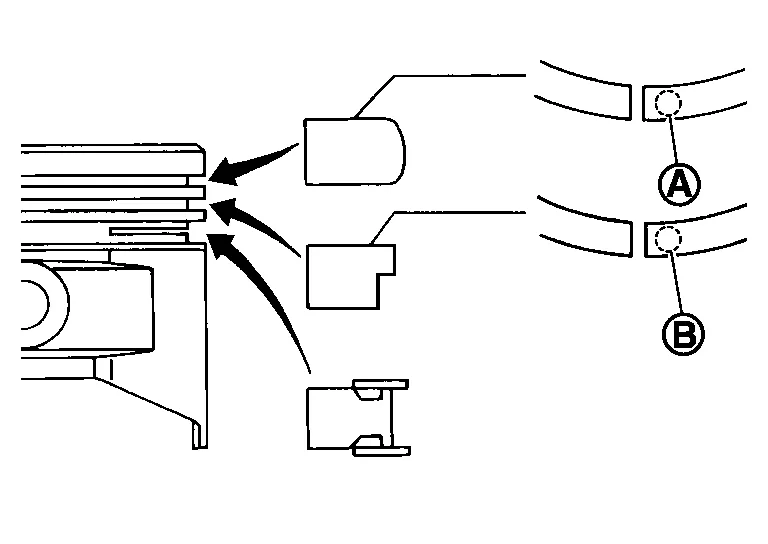 When removing the piston rings, be careful not to damage the piston. Do not expand the rings excessively.