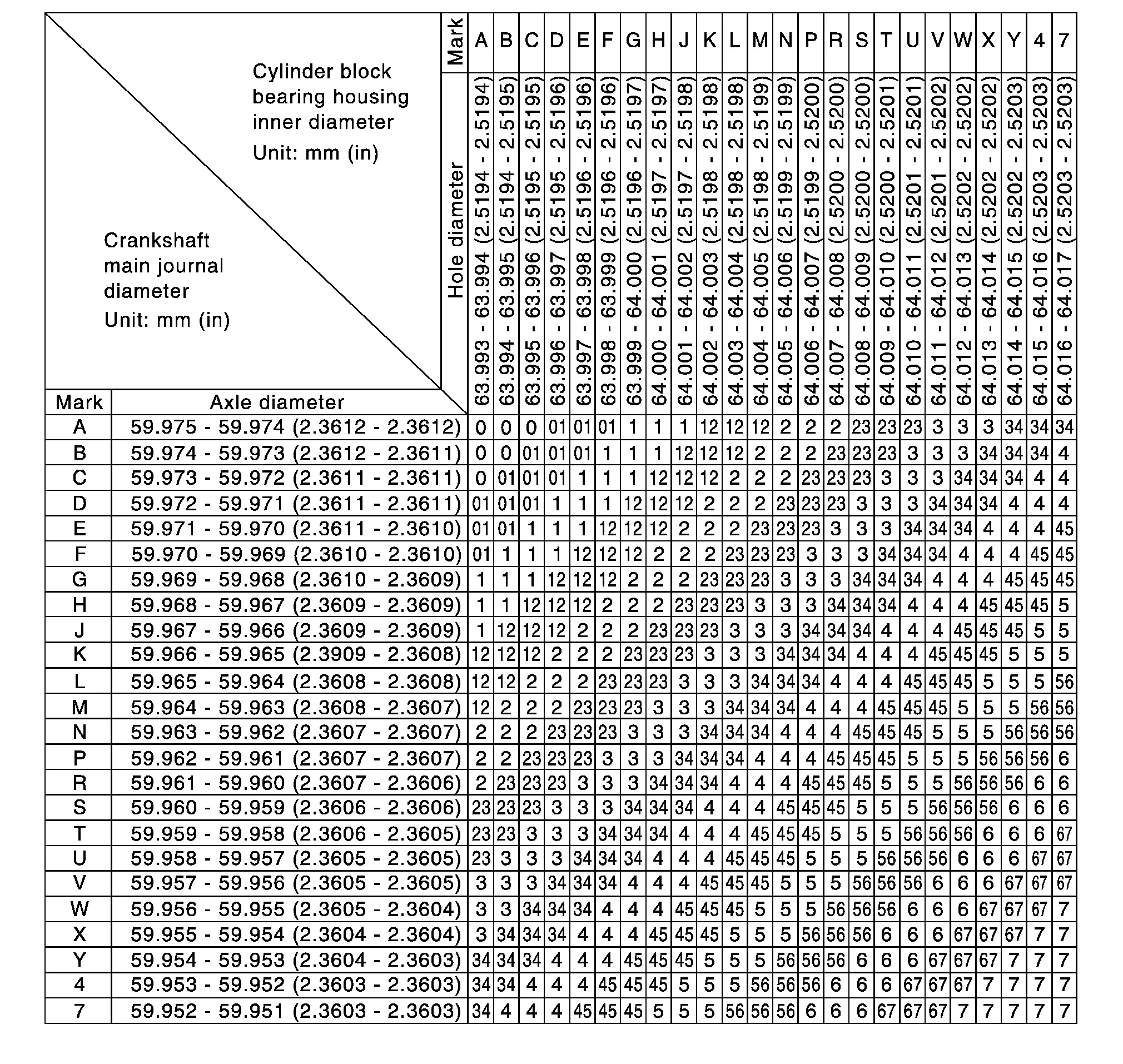 | Crankshaft pin journal grade number | Connecting rod bearing grade number |