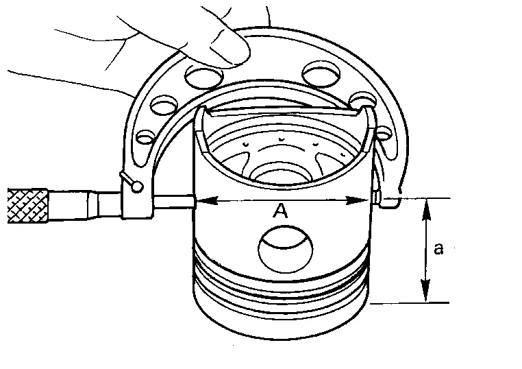 Measure piston skirt diameter. Refer to Cylinder Block.