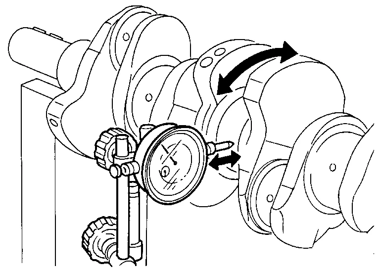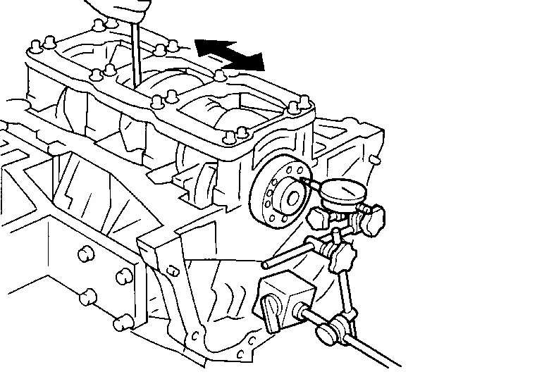 Before loosening the main bearing cap bolts, measure the crankshaft side clearance.