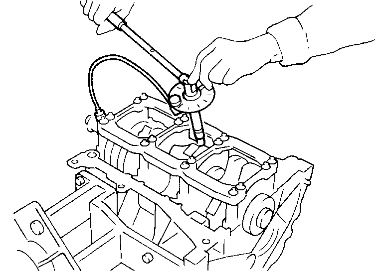 Install main bearing caps, and tighten to the specified torque. Otherwise, cylinder bores may be distorted after boring.