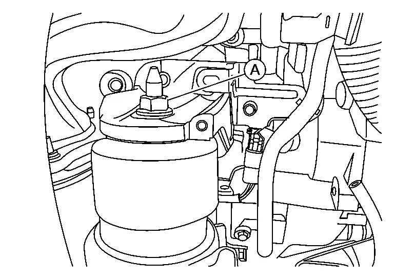 Remove the engine mount insulator (front) nut (A).