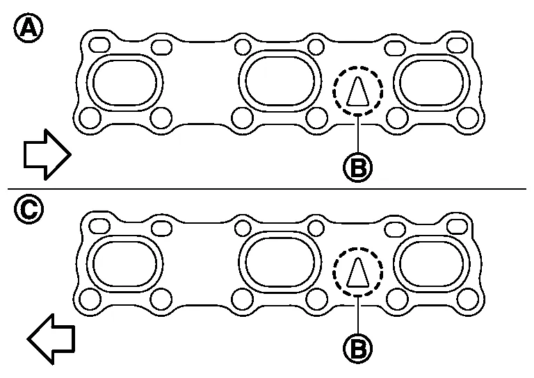 Use suitable tools (A/B) to check the flatness of the exhaust manifold mating surfaces.