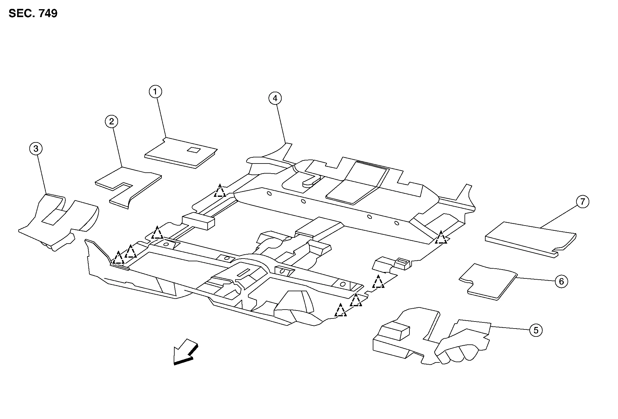 | 4. | Floor trim | 5. | Floor front spacer (LH) | 6. | Floor center spacer (LH) |