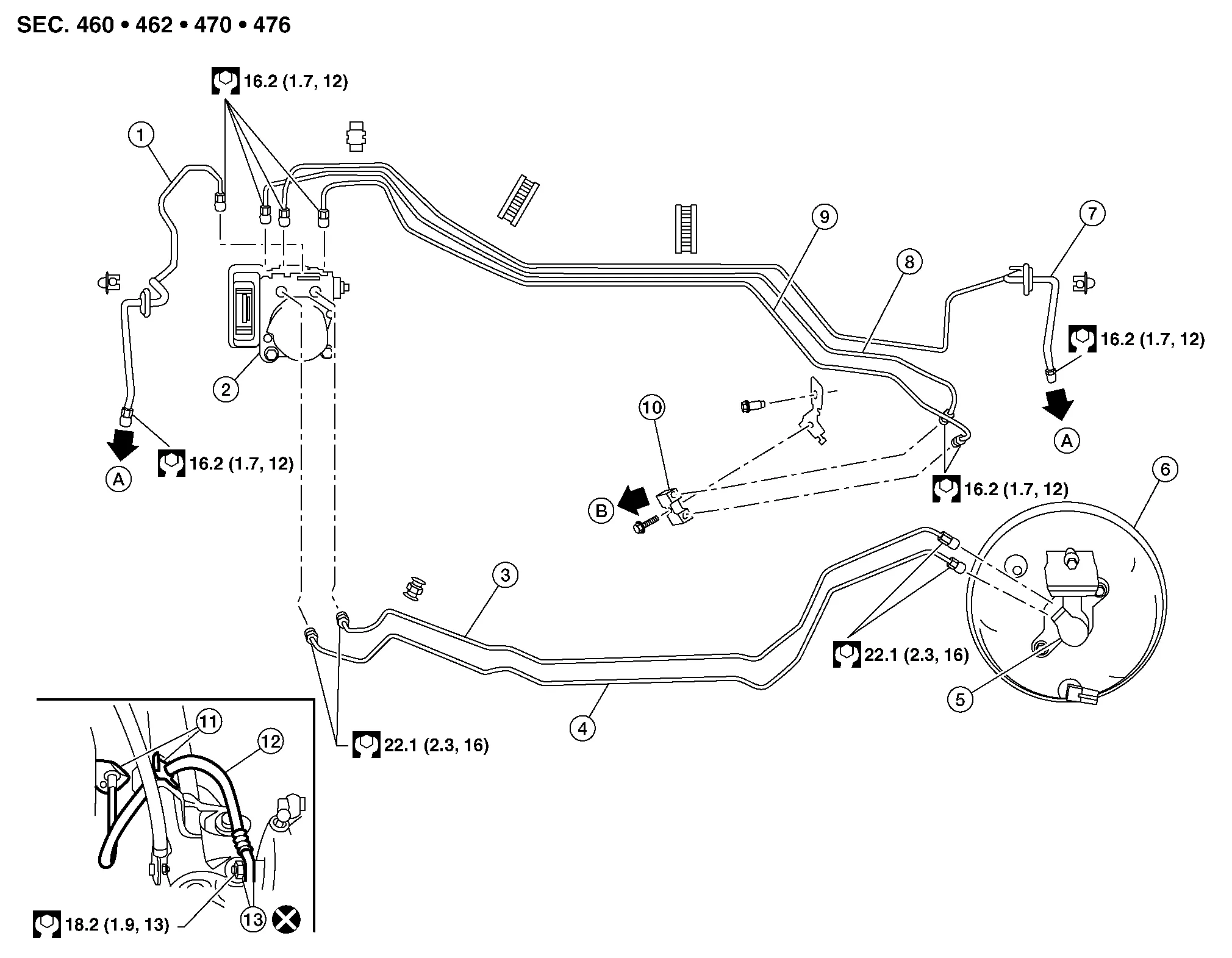 | 7. | Brake tube (LH) | 8. | ABS actuator to connector brake tube (RH) | 9. | ABS actuator to connector brake tube (LH) |