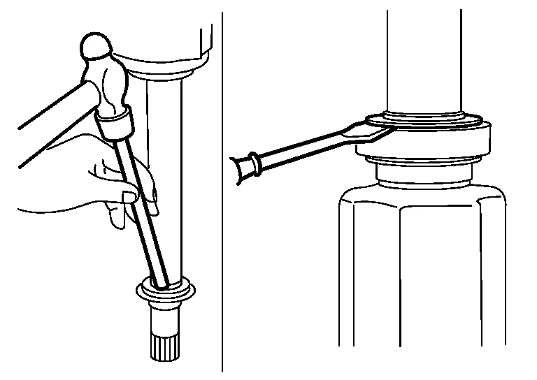 If joint sub-assembly cannot be removed after five or more unsuccessful attempts, replace entire drive shaft.