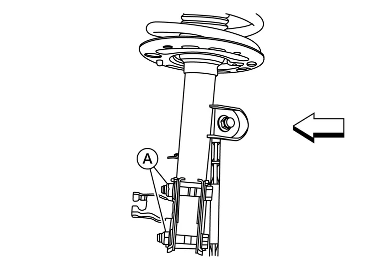 Be sure lower strut nuts (A) are facing front of Nissan Murano vehicle.