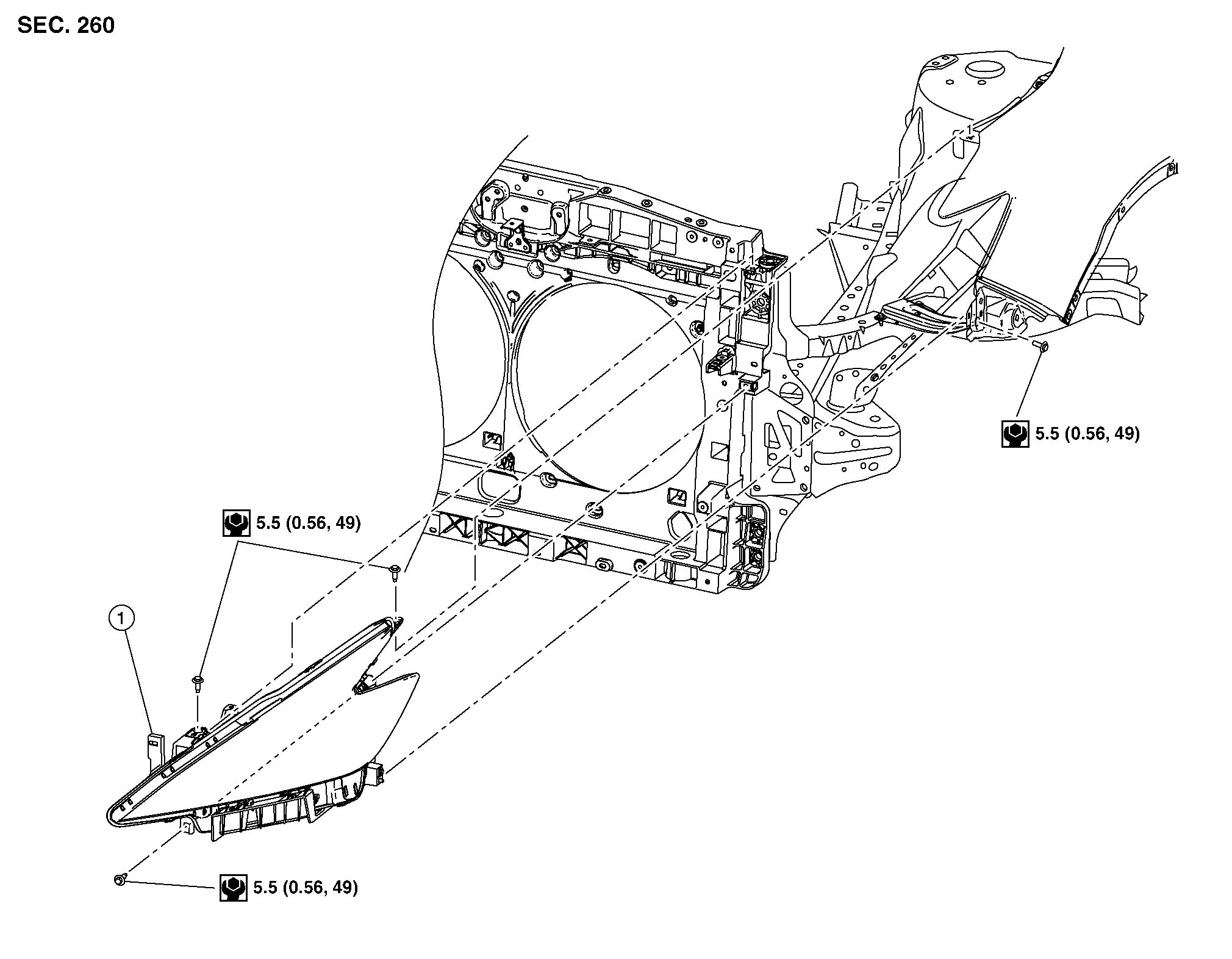 Remove front bumper fascia. Refer to Removal and Installation.
