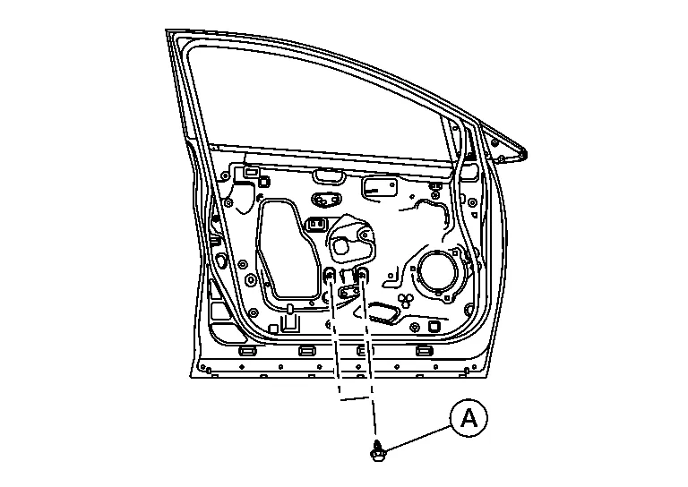 Operate main power window and door lock/unlock switch (LH door) or power window and door lock/unlock switch RH (RH door) to raise/lower the front door glass until the front door regulator to glass bolts can be seen.