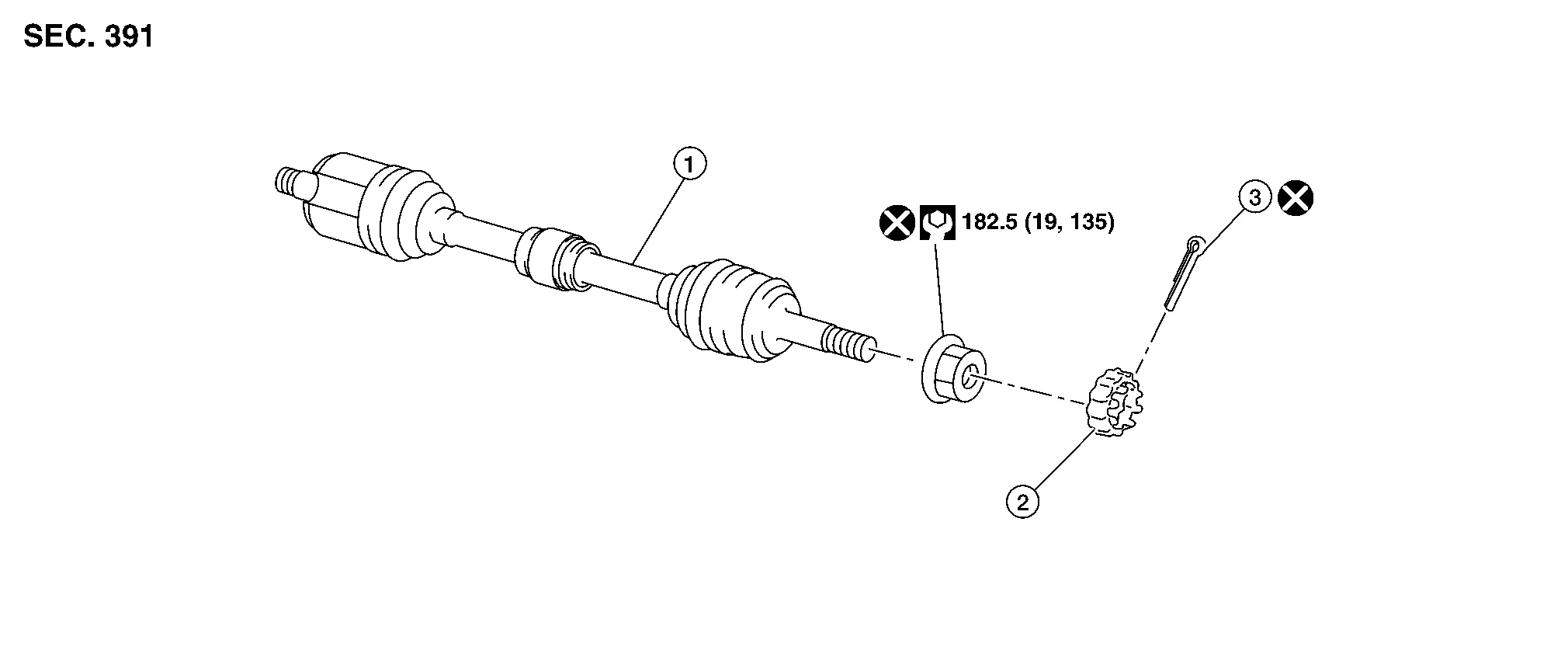 | 1. | Cotter pin | 2. | Nut retainer | 3. | Drive shaft |
