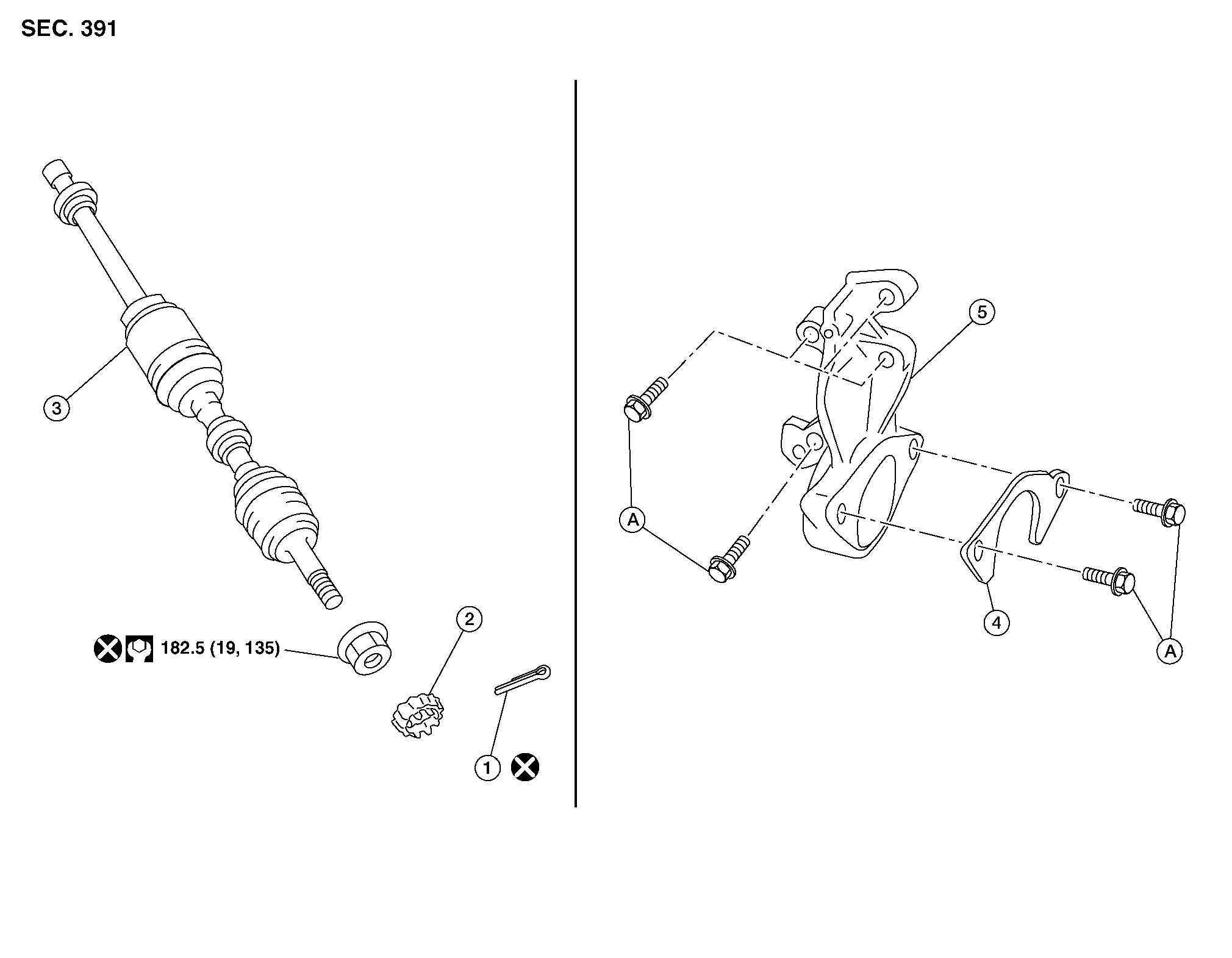 | 4. | Bearing retainer | 5. | Support bearing bracket | A. | Refer to Removal and Installation. |