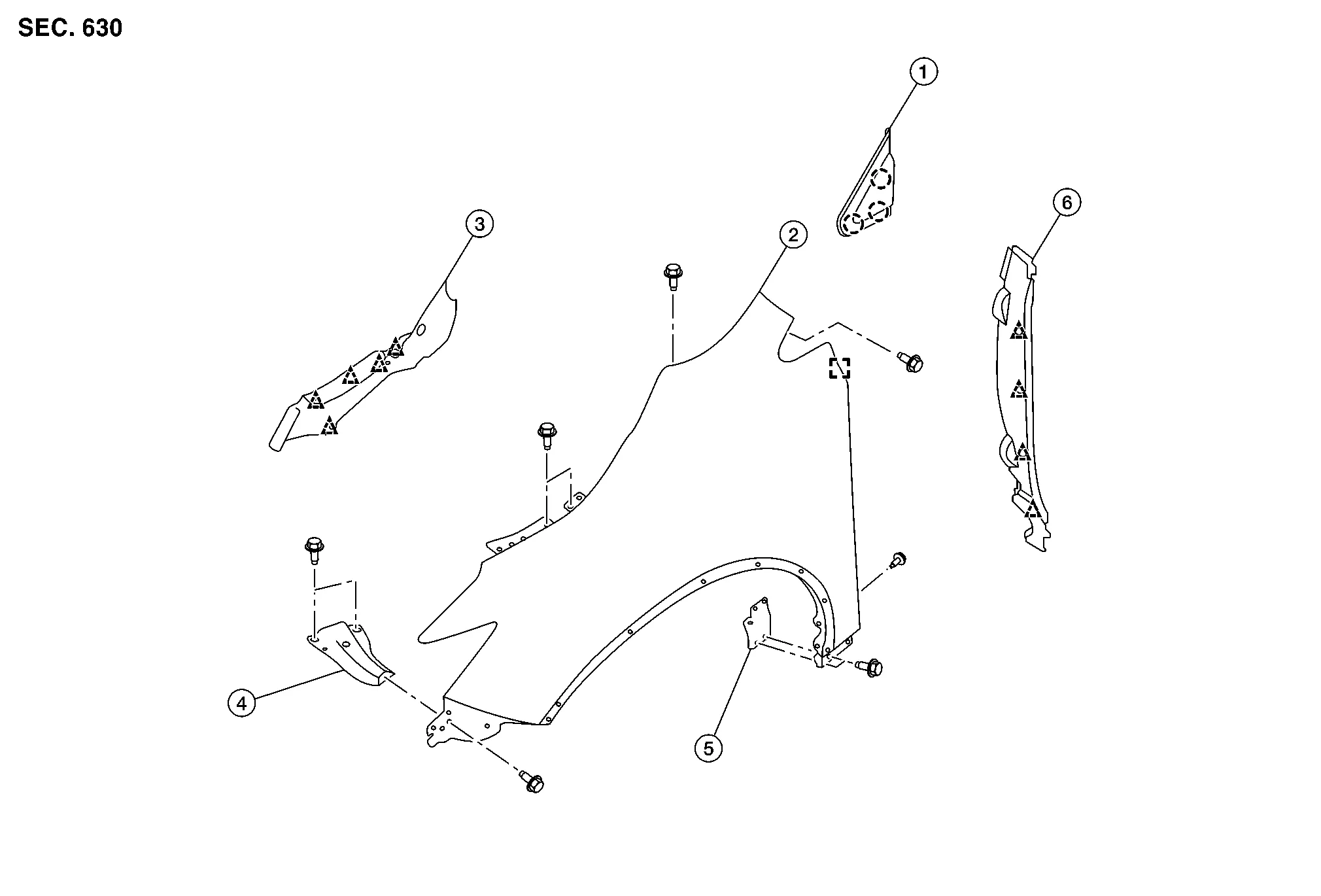 | 4. | Front fender front bracket | 5. | Front fender rear bracket | 6. | Front fender baffle |