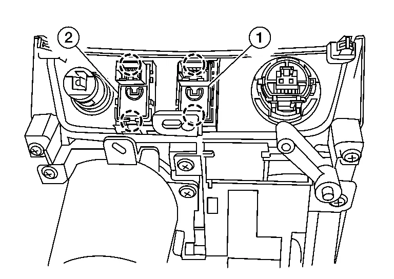 Release pawls using a suitable tool and remove heated seat switch (1, 2).
