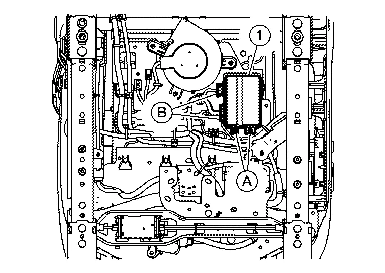 Remove screws (A) and disconnect harness connectors (B), then remove climate controlled seat control unit (1).