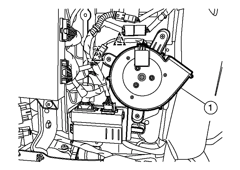 Disconnect harness connector (A) and remove screws (B) from seat back blower.