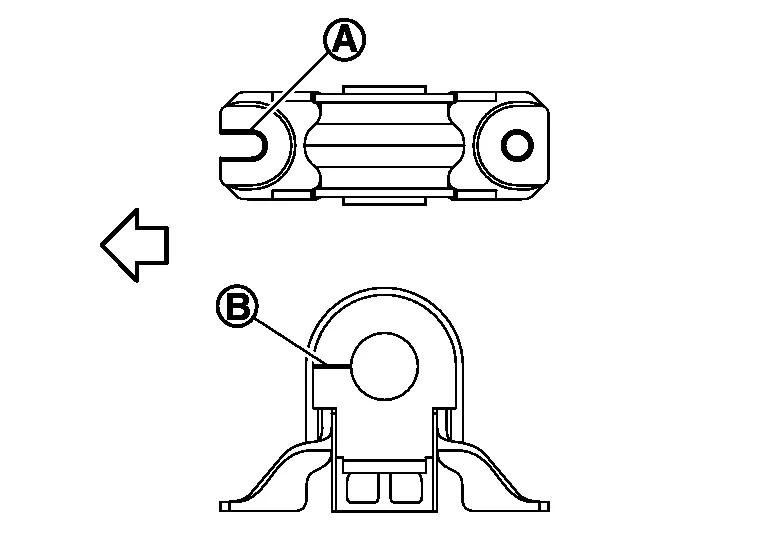 Install stabilizer bushing so that slit (B) is facing front of Nissan Murano vehicle (
