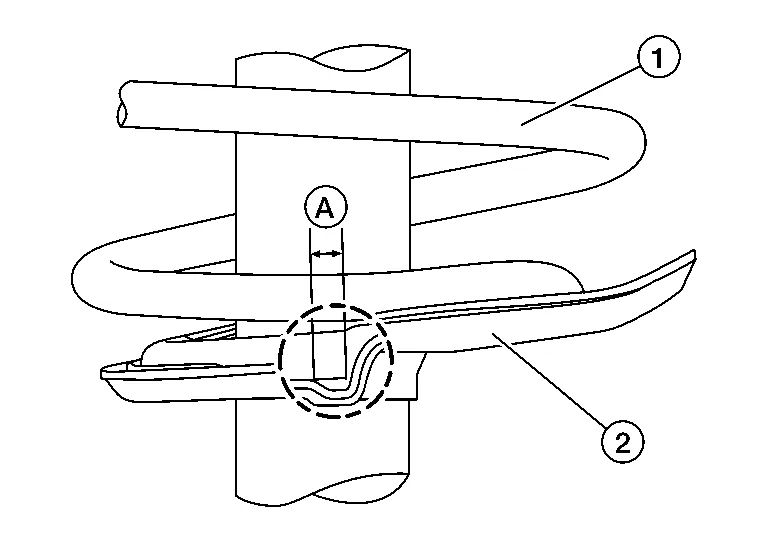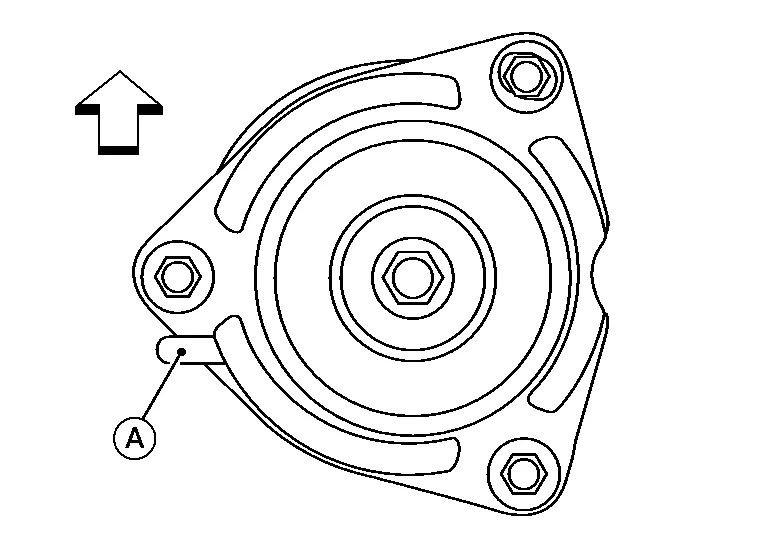 Be sure that tab (A) on strut mount insulator is positioned on outboard side of Nissan Murano vehicle.