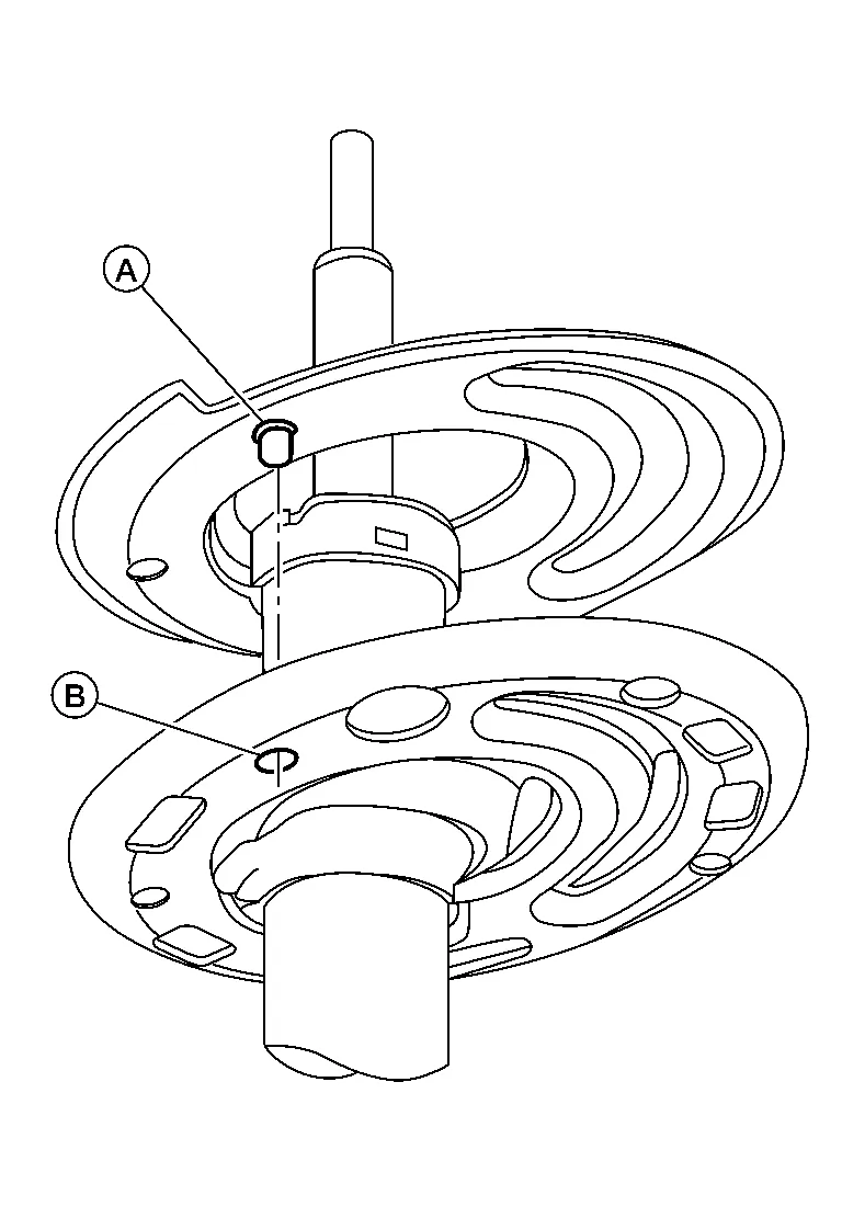 Install lower rubber seat to strut. Make sure that pin (A) on lower rubber seat is positioned into hole (B) on strut.