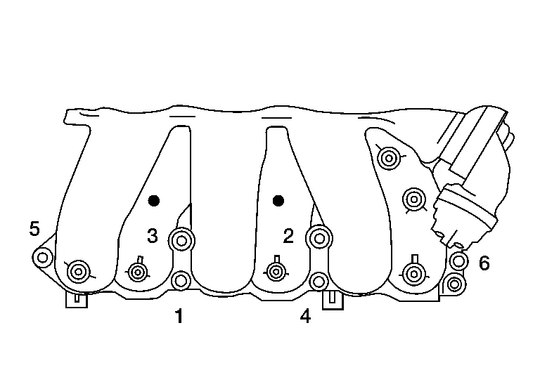 Loosen the intake manifold collector bolts and nuts in reverse of the sequence shown, then remove the intake manifold collector and gasket.