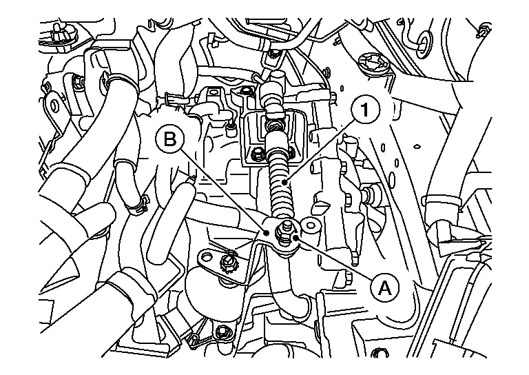 Remove nut (A) and separate control cable (1) from the manual lever (B).