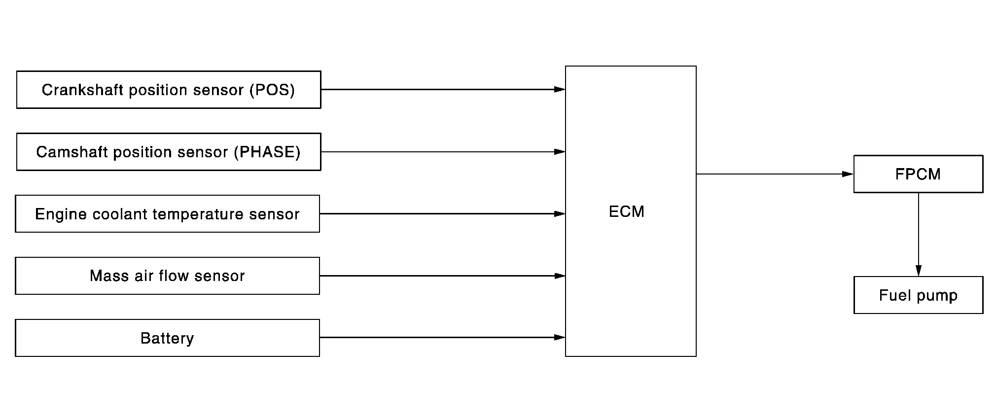The fuel pump control module (FPCM) controls the discharging volume of the fuel pump by the FPCM control signals (Low/Mid/High) depending on driving conditions.