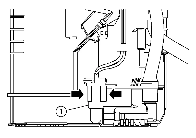 Release two clips and remove fuel tank temperature sensor (1) from pump assembly.