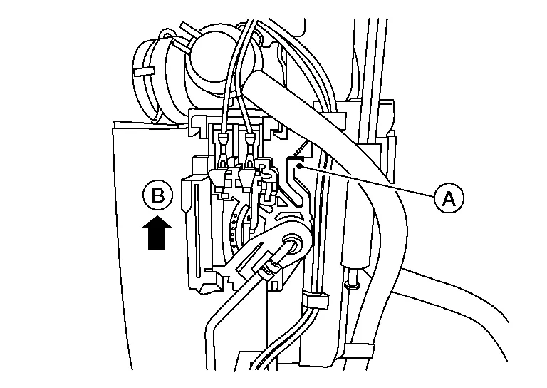 | 1. | Fuel level sensor unit | 2. | Fuel tank temperature sensor | A. | Fuel level sensor unit harness connector |