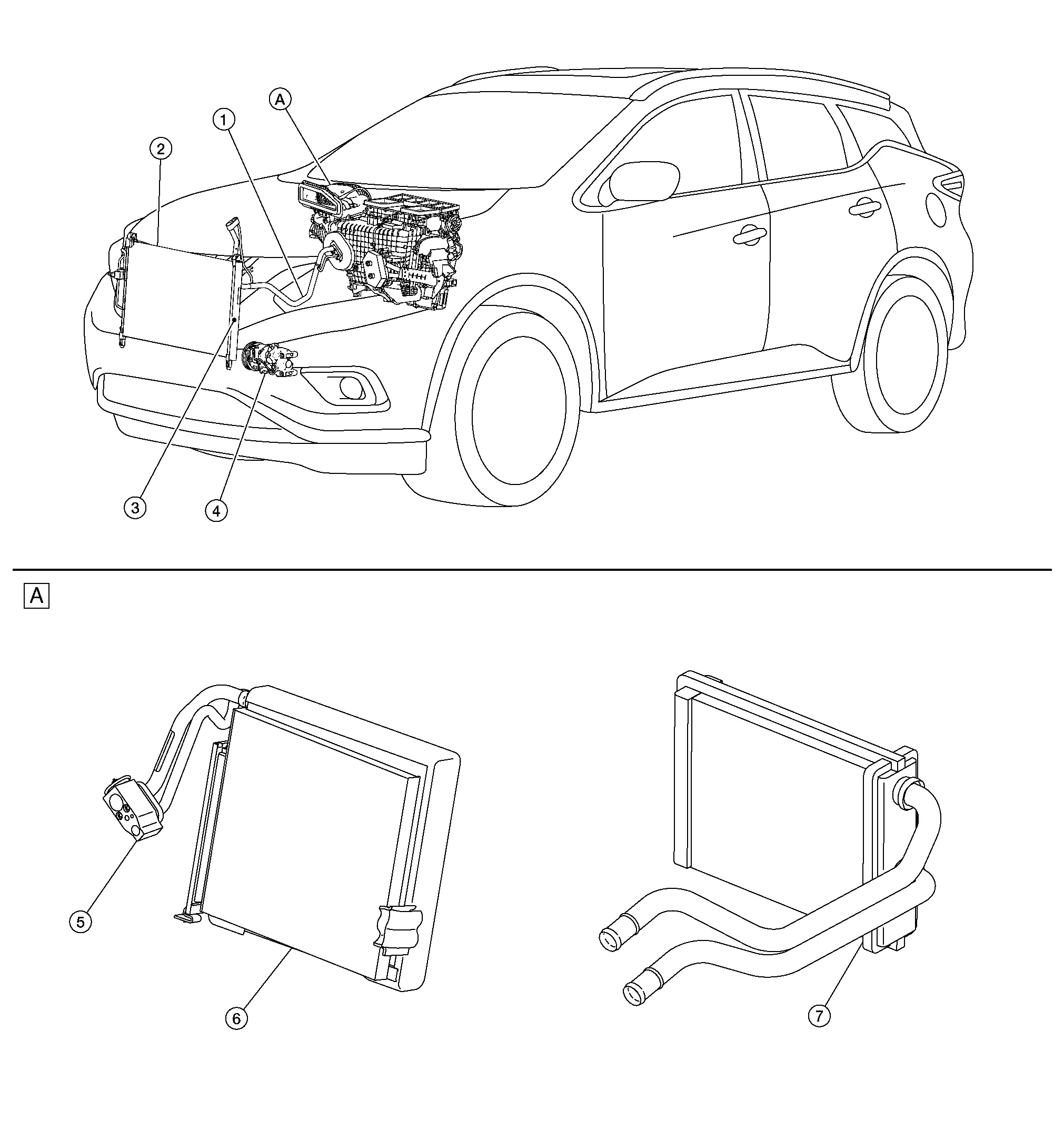 | 4. | Condenser and liquid tank assembly | 5. | Evaporator and expansion valve assembly | 6. | Blower motor |
