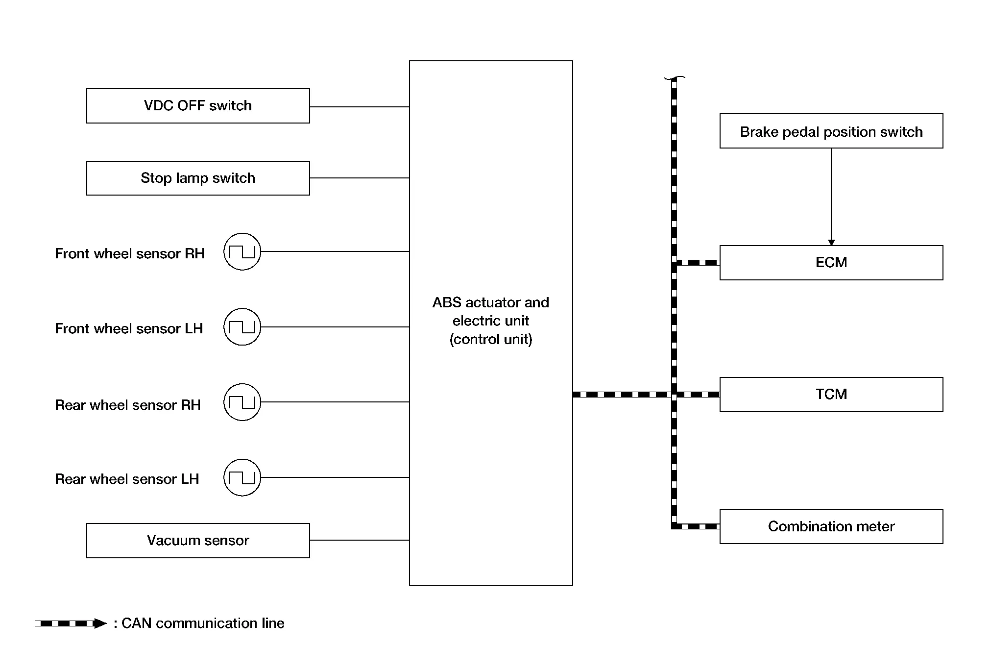 Mainly receives the following signal from ABS actuator and electric unit (control unit) via CAN communication: