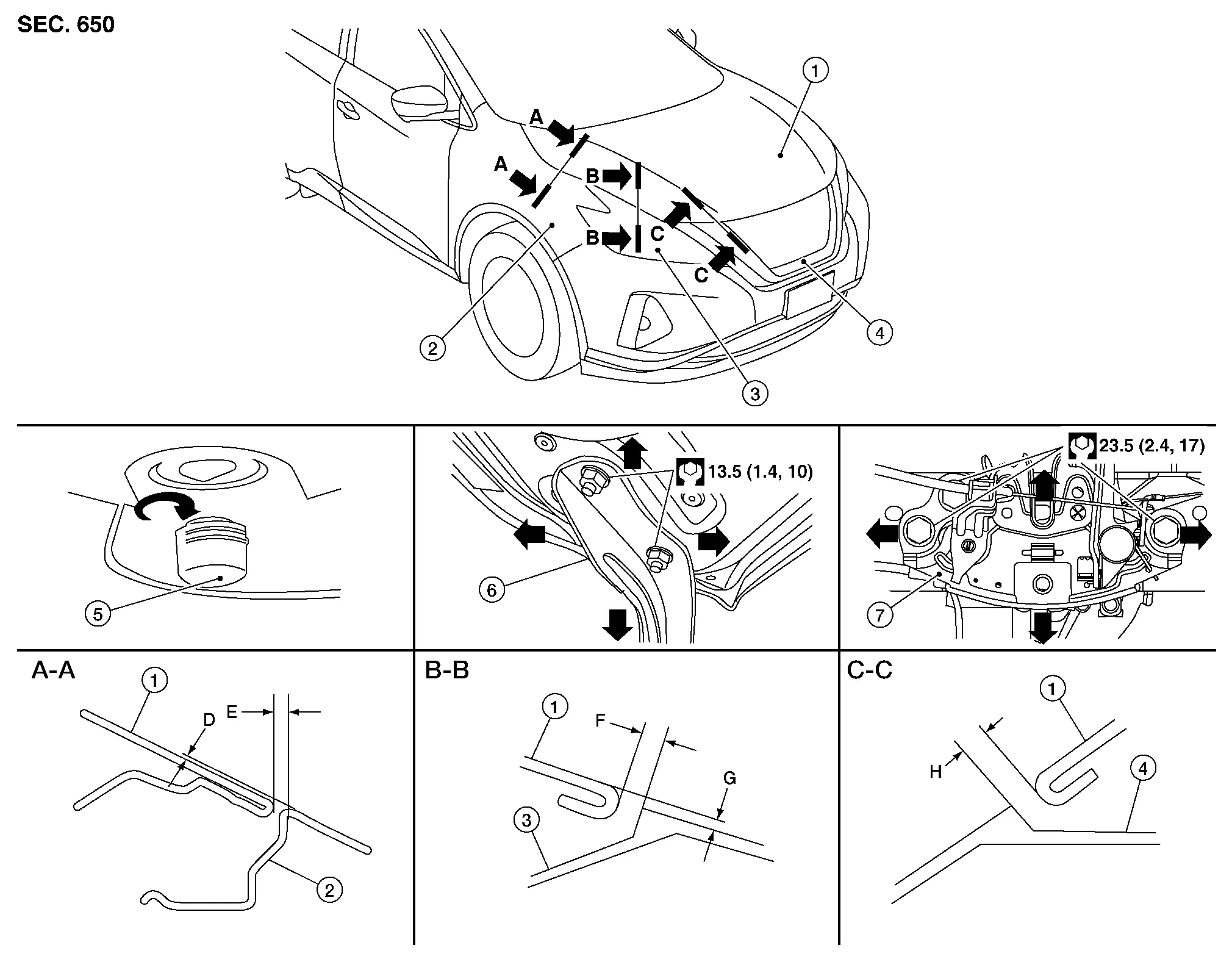 | Hood - Front combination lamp | C - C | H | Clearance | 5.5 ± 2.0 (0.22 ± 0.08) | 1.99 (0.08) |