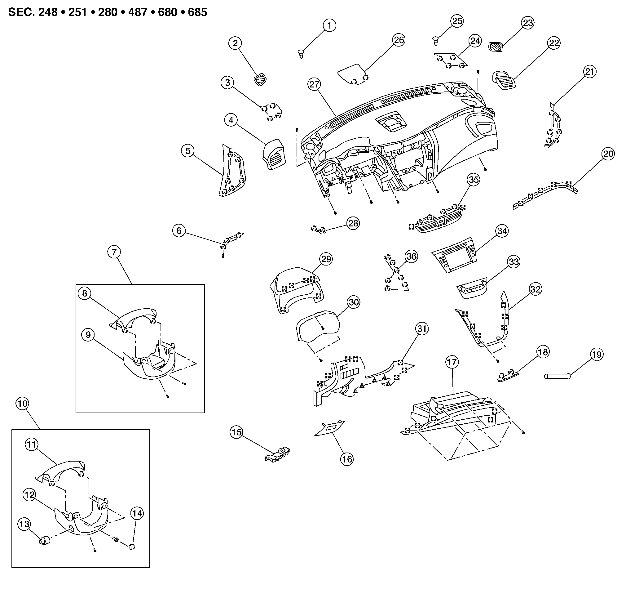 | 28. | Instrument finisher B | 29. | Cluster lid A | 30. | Combination meter |