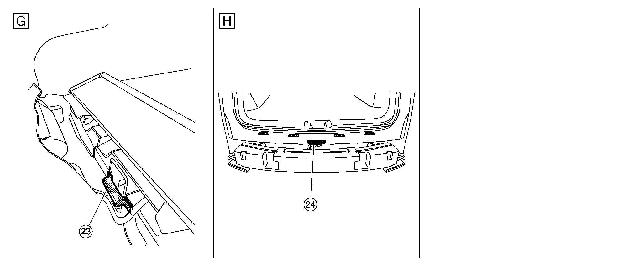 | G. | View of rear floor behind rear seats | H. | View with rear bumper fascia removed |