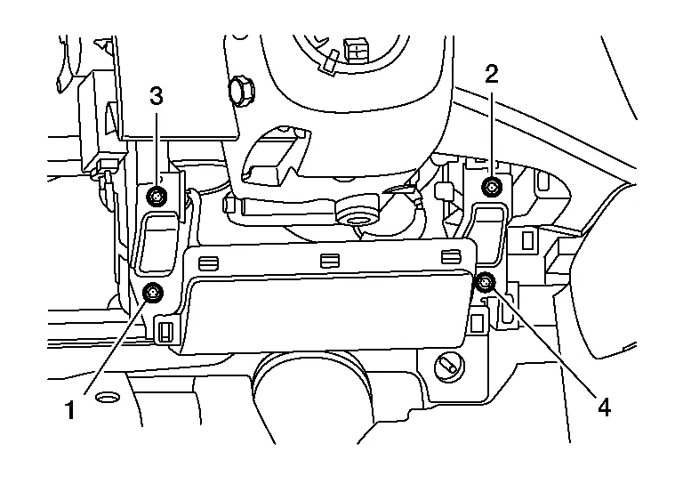 When installing left knee air bag module, first hand-tighten the bolts in the order shown then tighten bolts to specification in the order shown. Refer to Exploded View.