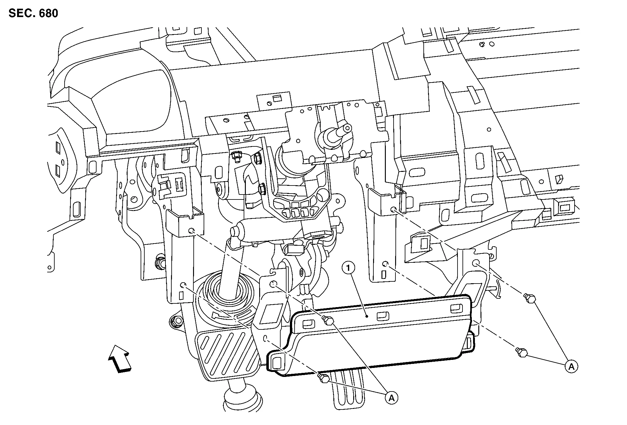 | 1. | Left knee air bag module | A. | Refer to Removal and Installation. | ![]() |