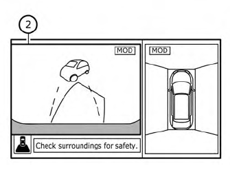 The MOD system does not detect moving objects in the front-side view. The MOD icon is not displayed on the screen when in this view.