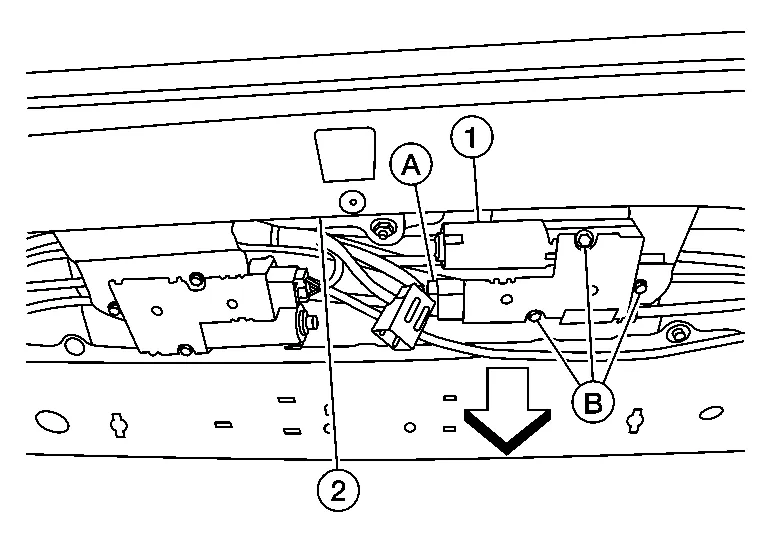 Remove moonroof motor assembly screws (B) and release from moonroof unit assembly (2)