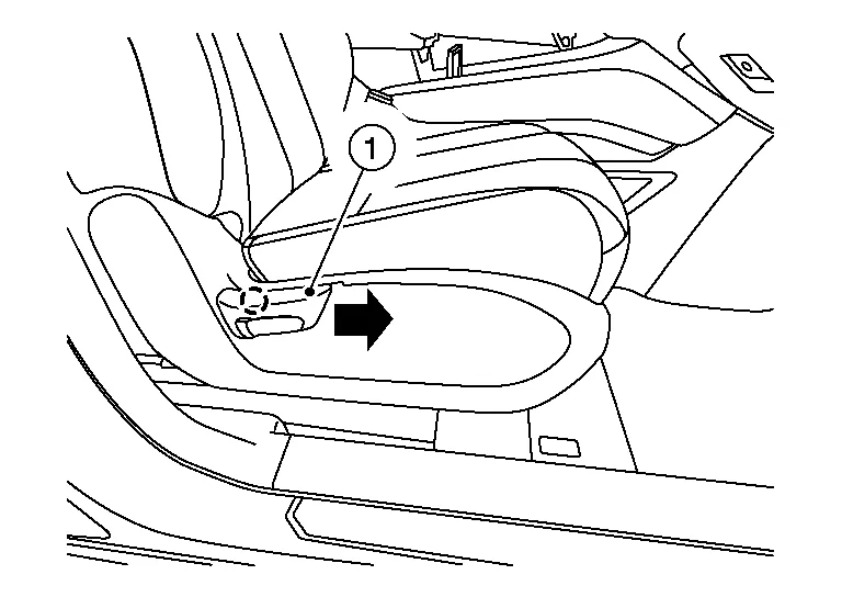 Release the pawl and remove the recline lever finisher (1) from the recline lever as shown.