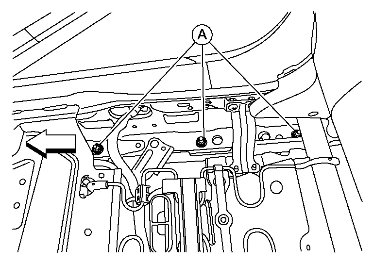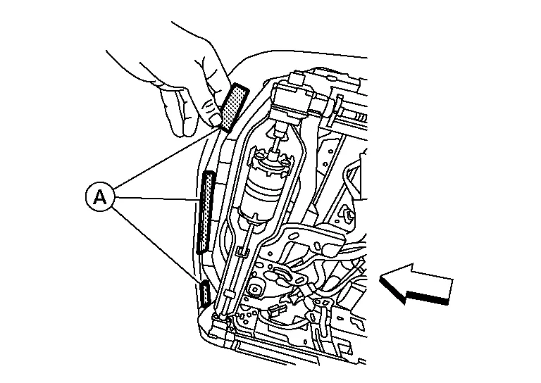 Install nuts (A) to the RH (outboard) side of the seat frame assembly and tighten to specification.