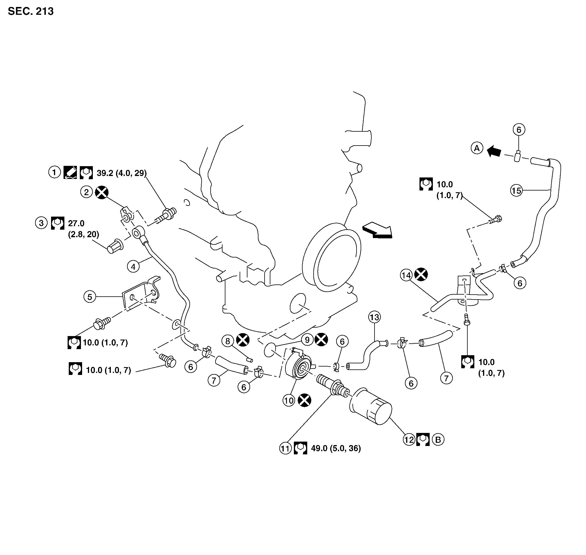 | 10. | Oil cooler | 11. | Connector bolt | 12. | Oil filter |