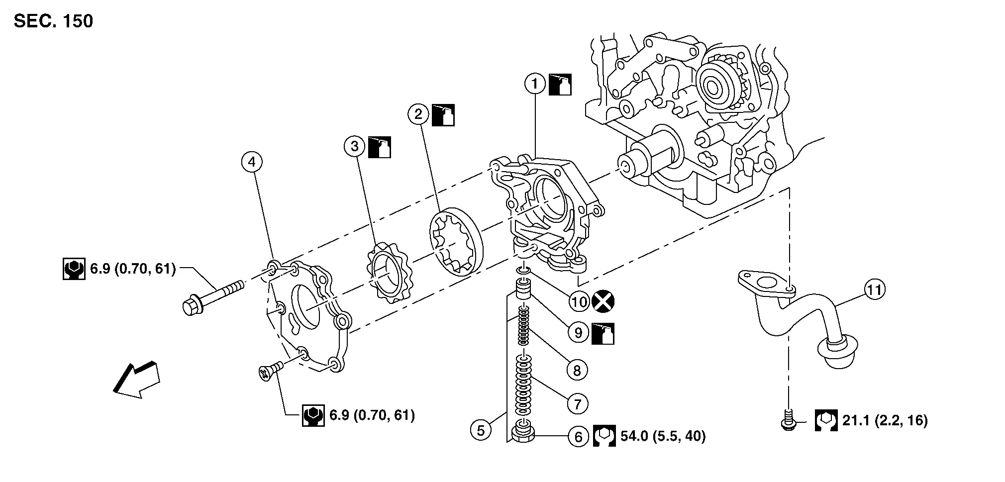 | 10. | Regulator valve O-ring | 11. | Oil strainer | ![]() |