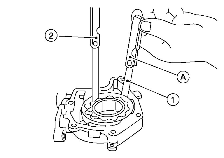 Calculate the clearance between inner rotor (1) and oil pump body as follows: