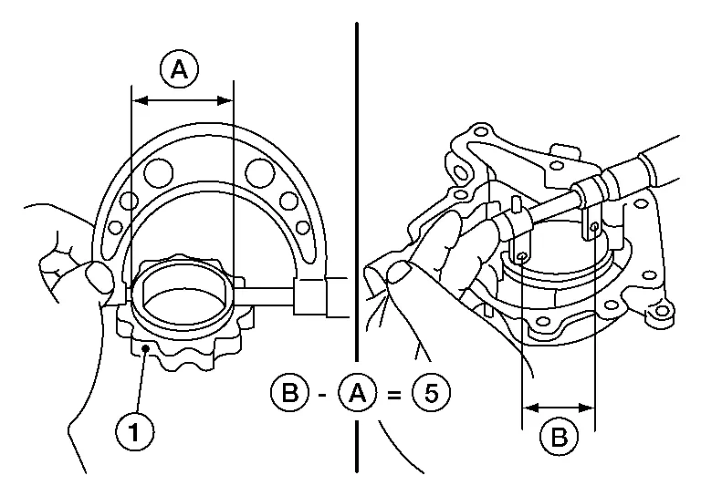 (clearance 5) = (inner diameter of oil pump body B) – (outer diameter of inner rotor A)