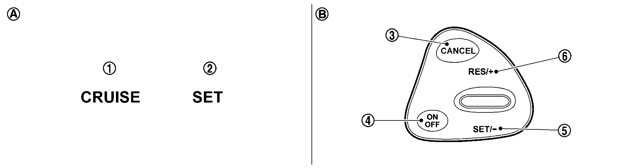 | 1. | CRUISE indicator | 2. | SET indicator | 3. | CANCEL switch |