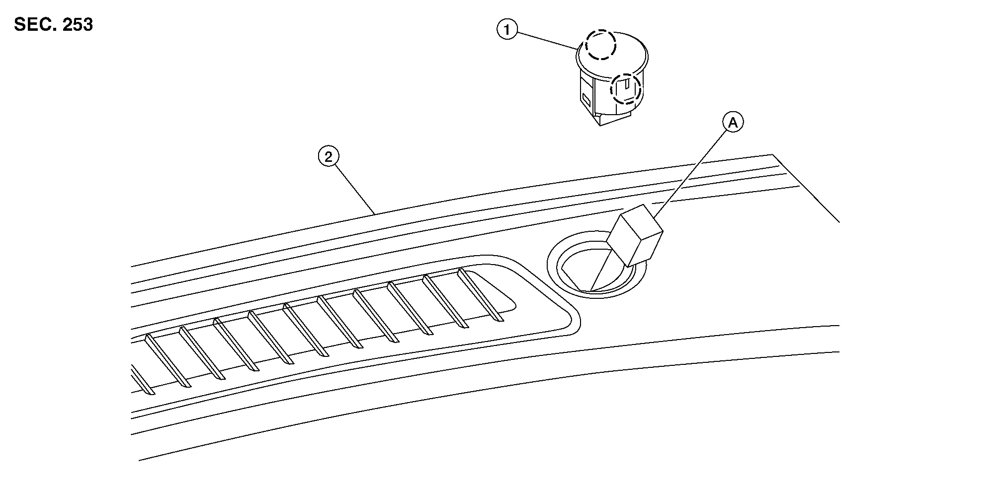 | 1. | Optical sensor | 2. | Defroster grille | A. | Harness connector |