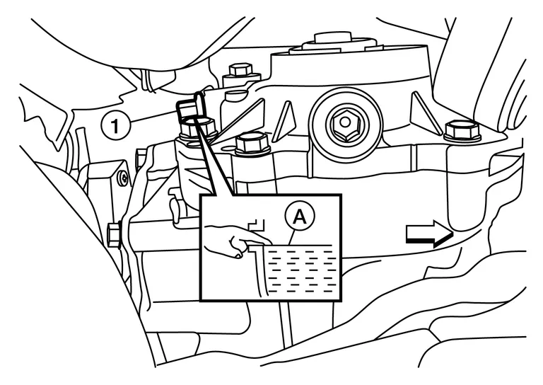 Fill with new transfer oil to the specified level (A) near the filler plug hole.