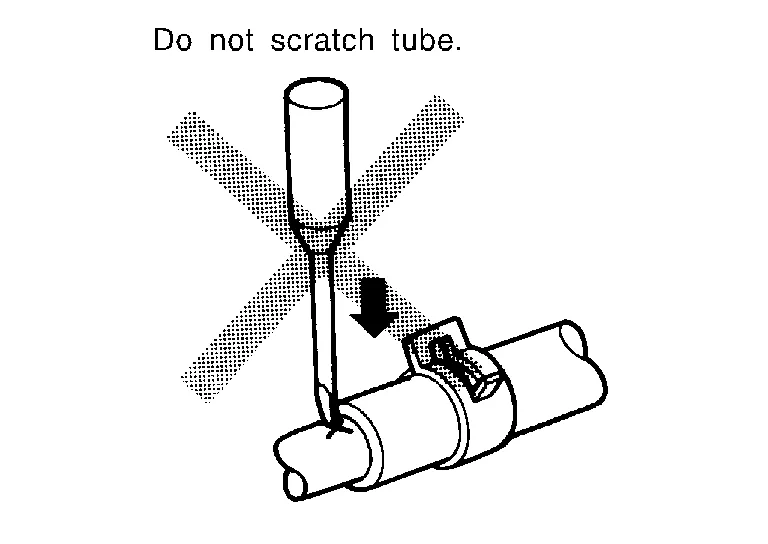 To prevent damage to rubber hose, do not pry off rubber hose with tapered tool or screwdriver.